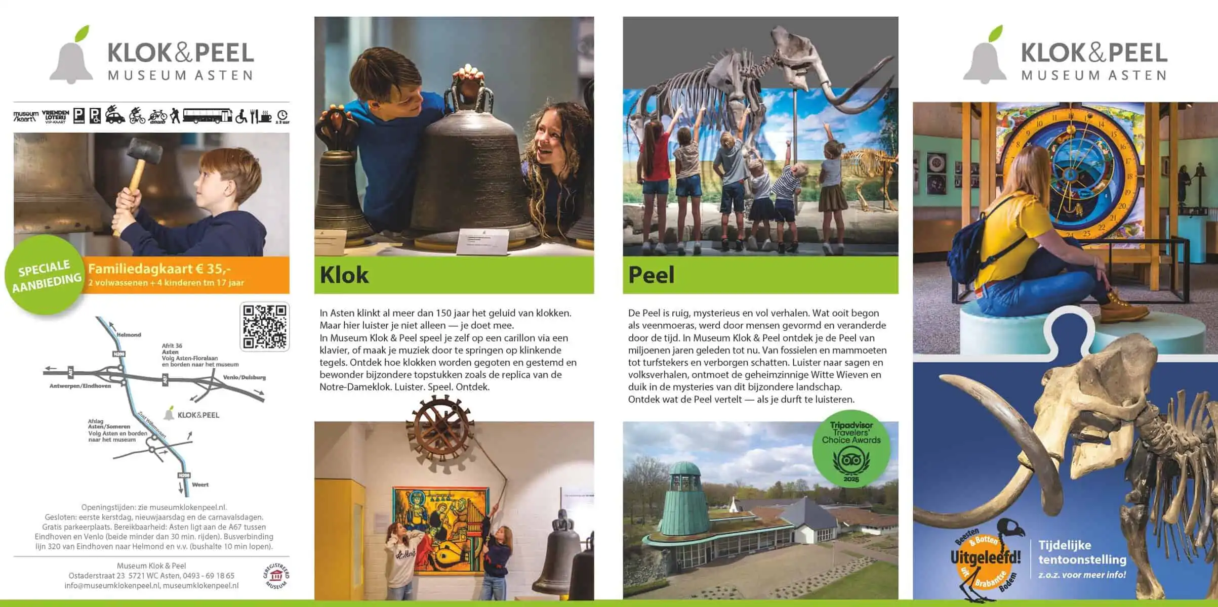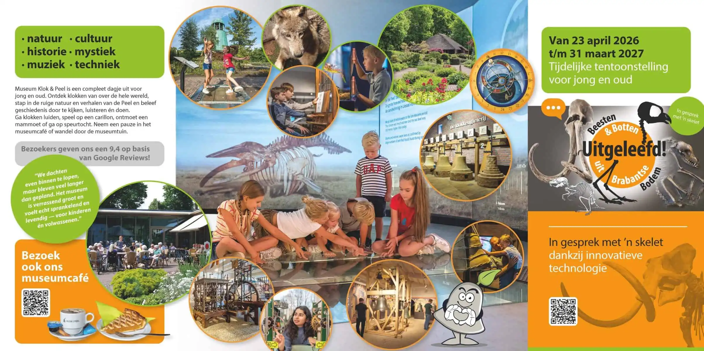 Een perfect dagje uit voor jong en oud bij Museum Klok & Peel - Asten: twee musea in één entree! Ontdek de fascinerende wereld van klokken én de rijke natuurhistorie van de Peelregio. Reis langs klokken van over de hele wereld, luid zelf een exemplaar of bespeel een beiaard of carillon. Educatief, interactief en onvergetelijk plezier!