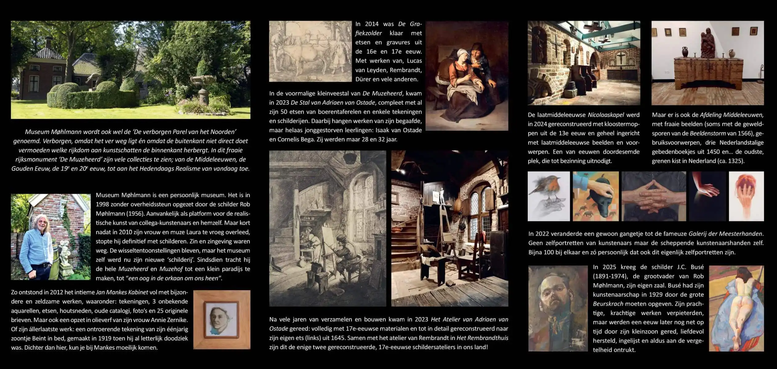 Achter eeuwenoude kastanjebomen ligt dromerig Museum Mohlmann, een bijna 50 meter lange kop-hals-rompboerderij uit ca. 1870. Grotendeels omgracht, op een paradijselijk perceel met oprijlaan ‘t Lauralaantje en schaduwrijke beeldentuin ‘De Muzehof’. Een mystieke plek: tien muzen zouden er rondwaren (de negen zusters plus stiefzus Dubia/Twijfel). Het museum herbergt een middeleeuwse Nicolaaskapel en 17e-eeuws schildersatelier.