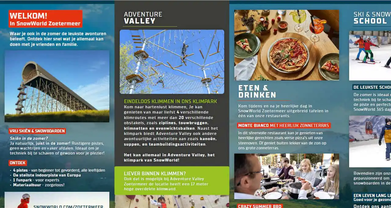 Indoor skicentrum met de steilste indoorpiste van Europa. SnowWorld Zoetermeer heeft 4 verschillende pistes en maar liefst 10 skiliften.